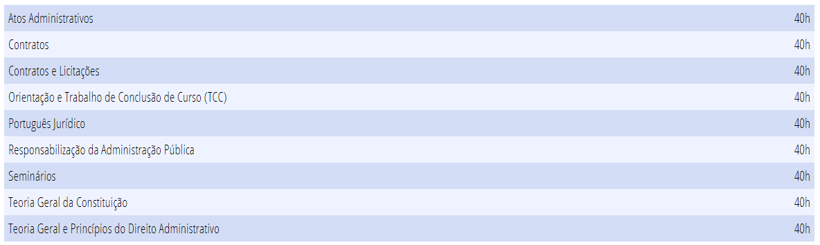 Voltado para advogados e profissionais do Direito, o curso oferece ainda uma especialização aos profissionais de outras areas que estão migrando para o ramo do Direito e que influencia diretamente suas áreas de atuação. Dinâmico, capacita a atuar junto a empresas, organismos, governos e organizações.