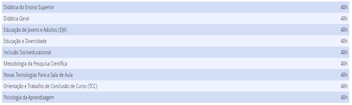 Os cursos de pós-graduação são 100% online. A participação é acompanhada por tutores qualificados (pós-graduados, mestres e doutores) aptos a sanar as dúvidas dos alunos. Todos os materiais didáticos serão disponibilizados por meio de uma plataforma multidisciplinar de ensino. Por lá o aluno tem acesso a livros, videoaulas e atividades. Porém algumas aulas não contém vídeo, o que em nada prejudica o aprendizado.