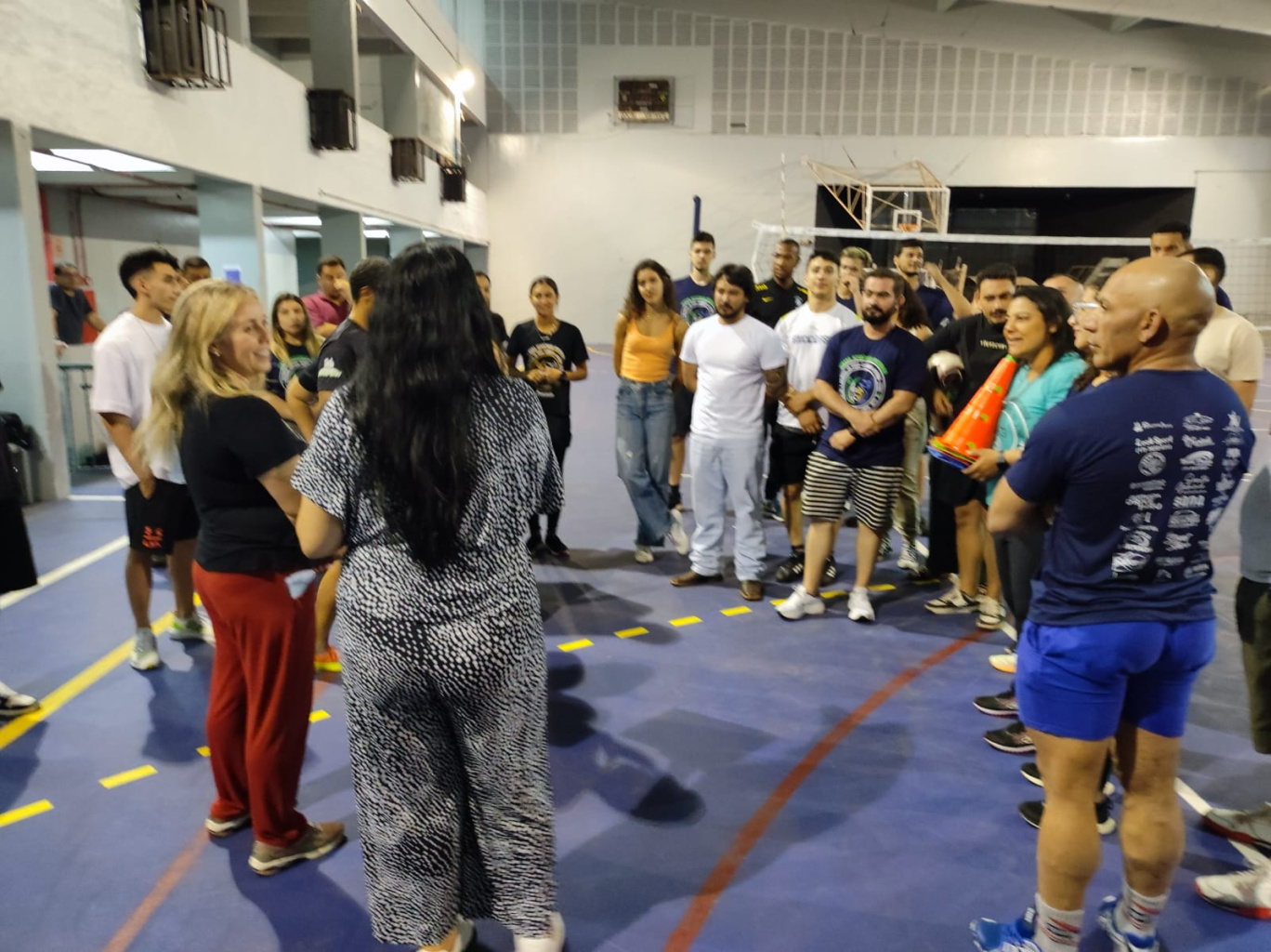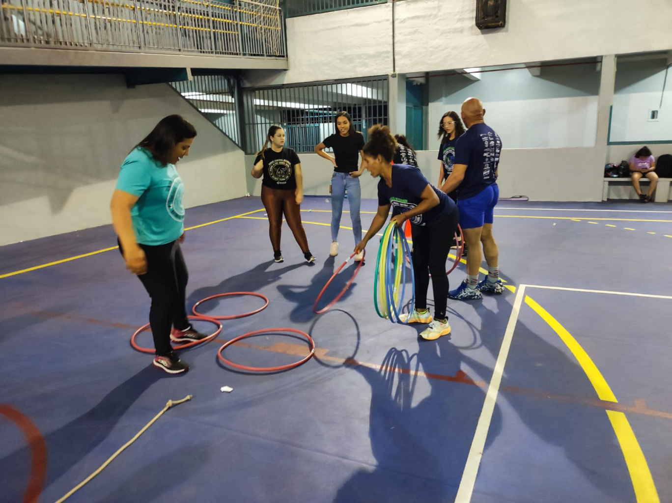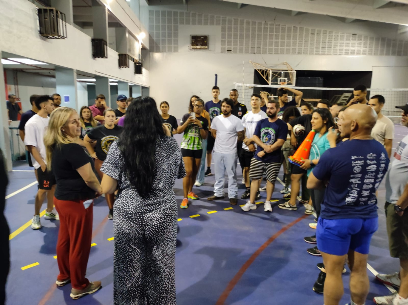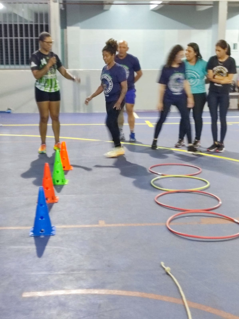 Além disso, os alunos tiveram acesso a dois minicursos práticos. O primeiro, ministrado pela professora Sandra de Souza Nery, abordou estratégias de exercício físico para pessoas com transtorno do espectro autista. O segundo, conduzido pelo professor Miguel Antônio da Silva, explorou o treinamento com kettlebell, modalidade em ascensão nos espaços esportivos.
