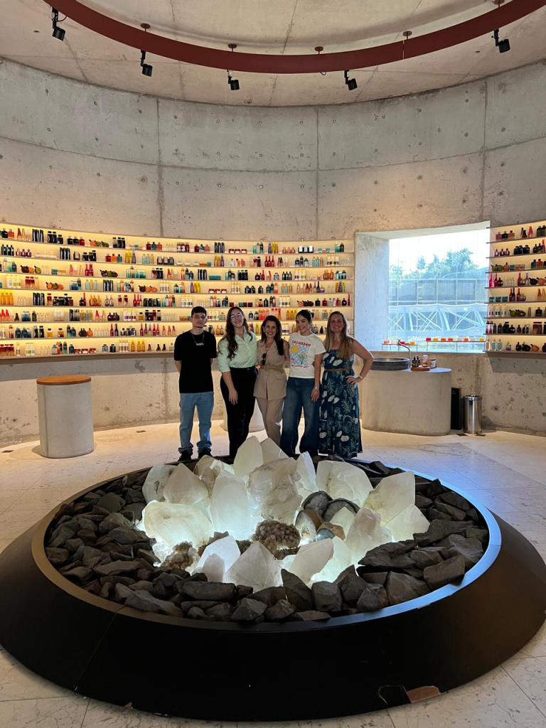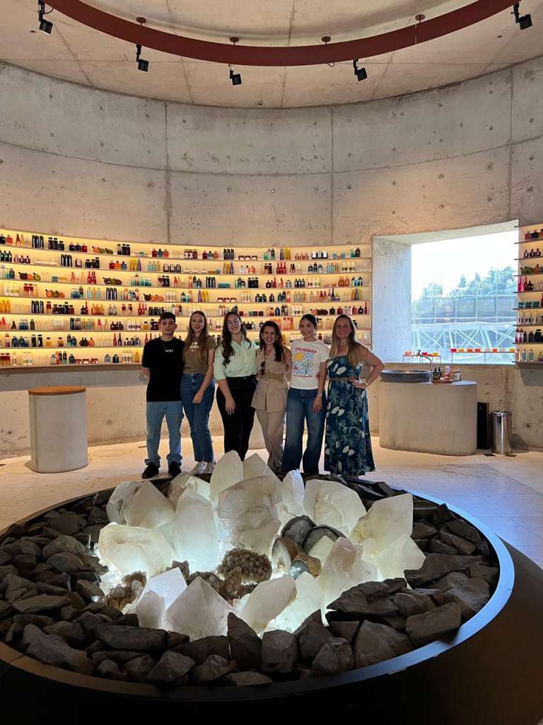 Na Natura, os estudantes puderam acompanhar de perto o processo de produção dos produtos e das embalagens, em uma das empresas mais sustentáveis do Brasil, além de visitar os modernos laboratórios de Tecnologia e Pesquisa Avançada, o Espaço Olfativo, o Jardim das Jabuticabeiras, Fábrica Bacia do Rio São Francisco e o encantador Jardim de Frascos, uma instalação artística composta por frascos pintados e dispostos em hastes, que remetem a um campo de flores coloridas.