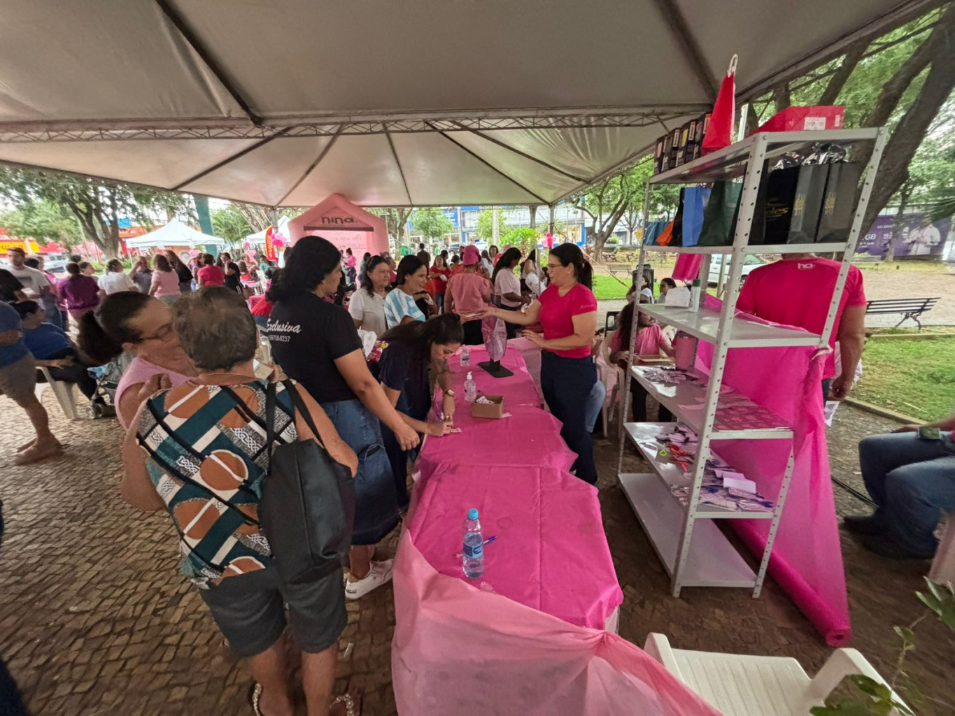 Durante a ação, os universitários do UNIJALES orientaram o público sobre como é feito o diagnóstico, a importância da prevenção e as principais etapas do tratamento do câncer de mama.