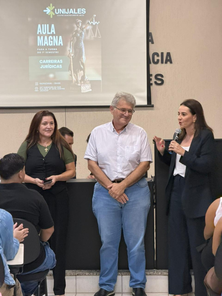 “Iniciar o ano letivo apresentando aos alunos profissionais de sucesso e as diversas carreiras possíveis a partir da formação reforça o sonho que motivou a escolha pelo curso e aproxima os estudantes de uma realidade que, até então, era apenas imaginada”, destacou Erica. A coordenadora também agradeceu ao presidente da OAB Jales, Dr. Ricardo Hentz Ramos, e ao vice-presidente da instituição, Prof. Me. Gustavo Baldan, docente do UNIJALES, pela acolhida e parceria na realização da Aula Magna.