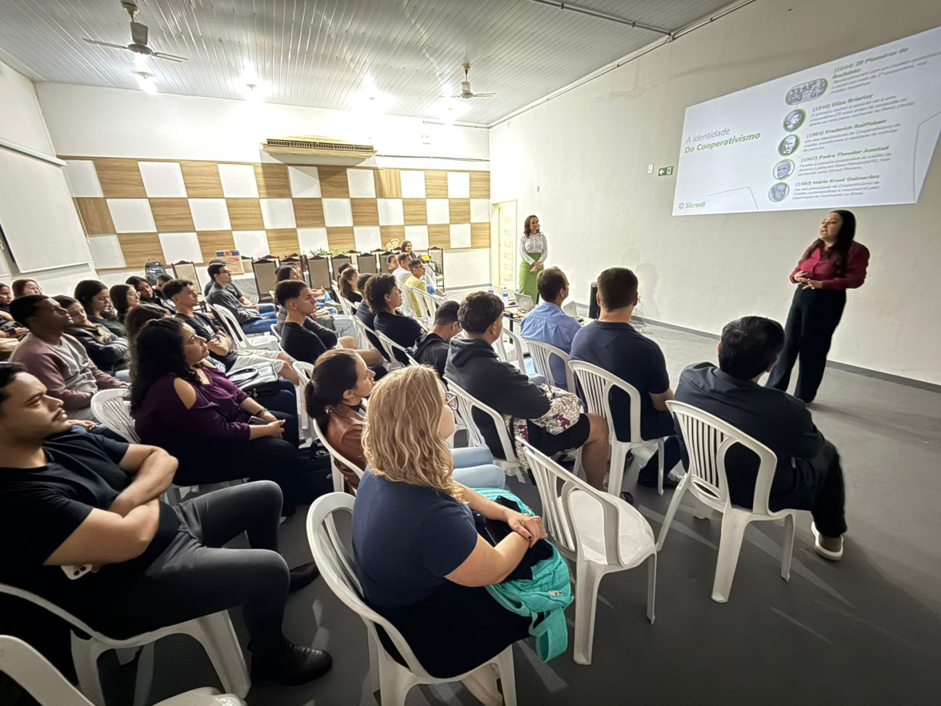 Durante a palestra, as convidadas explicaram o que é o cooperativismo, como ele surgiu e qual a sua importância no cenário atual. Também abordaram o funcionamento das cooperativas de crédito e apresentaram uma visão do mercado financeiro dentro desse contexto, mostrando as oportunidades e desafios da área.