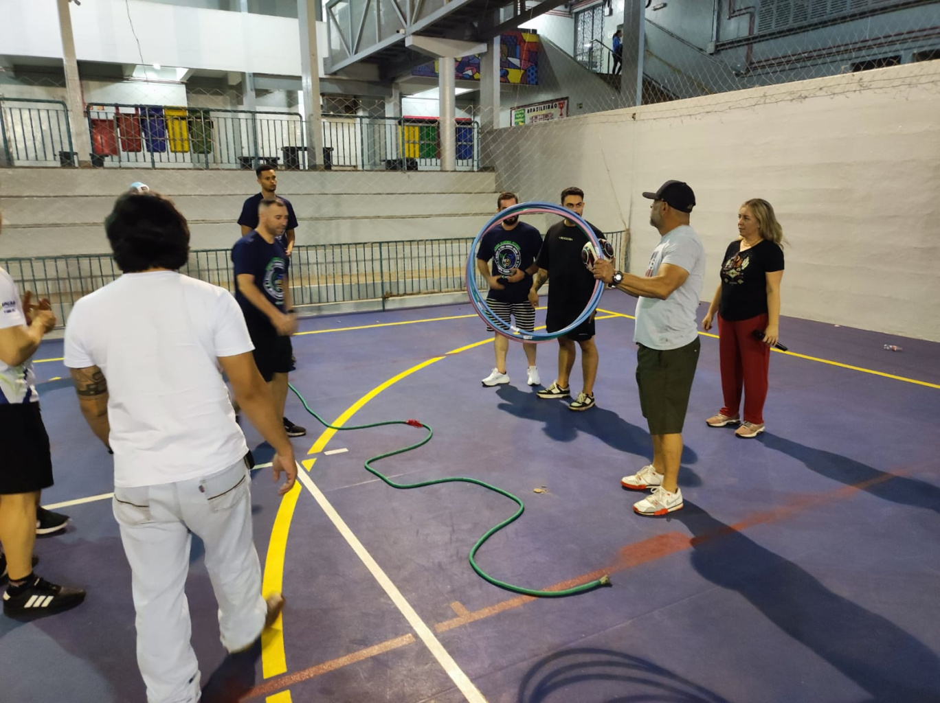 Além disso, os alunos tiveram acesso a dois minicursos práticos. O primeiro, ministrado pela professora Sandra de Souza Nery, abordou estratégias de exercício físico para pessoas com transtorno do espectro autista. O segundo, conduzido pelo professor Miguel Antônio da Silva, explorou o treinamento com kettlebell, modalidade em ascensão nos espaços esportivos.